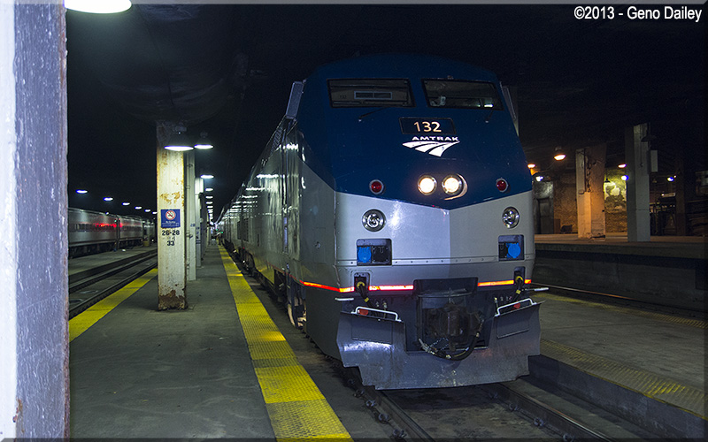 GE P42DC #132 leading a consist of two engines and 10 cars.