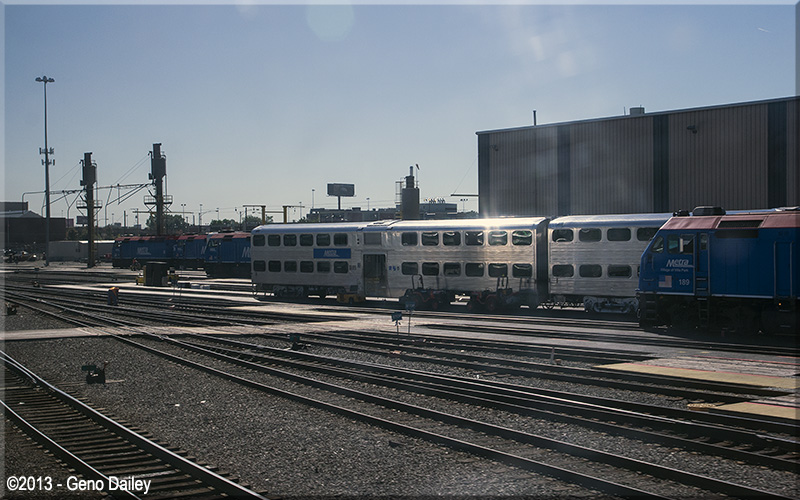 Metra, Chicago's commuter rail system has their big coach yard next to Amtrak's as seen from the train just after departing Union Station.