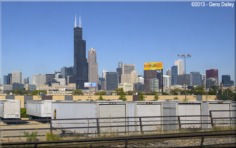 Now leaving downtown Chicago, The Windy City! Shown here with the wonderful Willis Tower, Chicago's tallest building.
