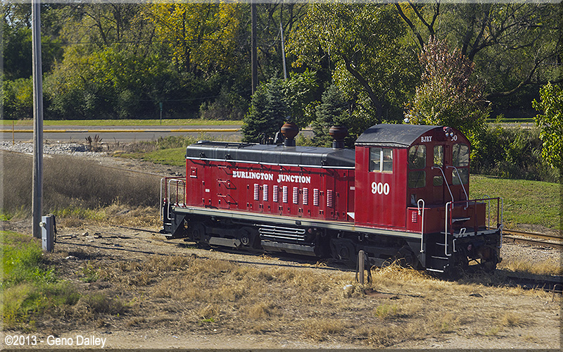 | Passing by Burlington Junction Railway EMD SW9 #900 at Montgomery, IL where this railroad has a connection with BNSF. |