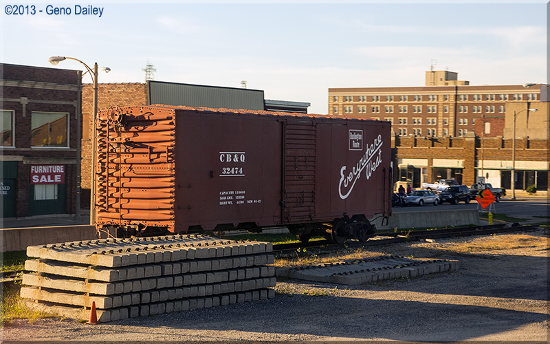 | A former CB&Q 40ft box car located just west of the Galesburg Station. |