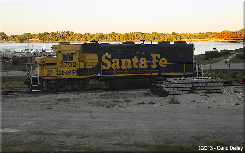 | BNSF EMD GP39-2 #2792 sits on a siding just after crossing the Mississippi River. |