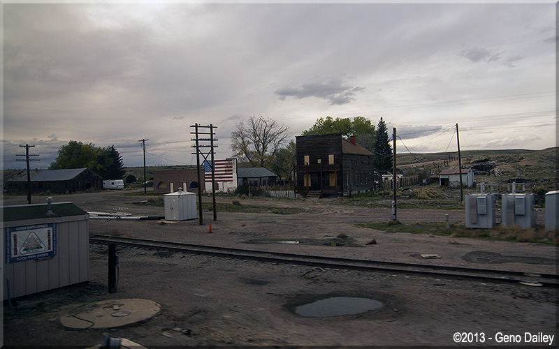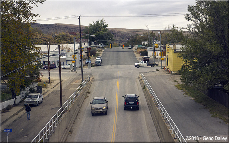 | Now we're in Lyman, WY. The American Flag mural on that building in the background is cool! |