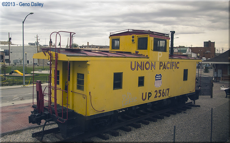 | Union Pacific Caboose #25617 on display next to the Rawlins station. |