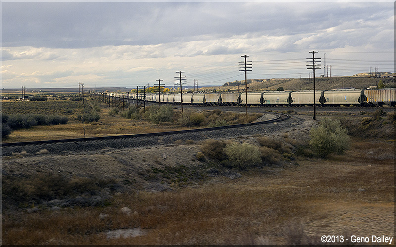 | Now passing some interesting rock formations at West Bittercreek, WY. |