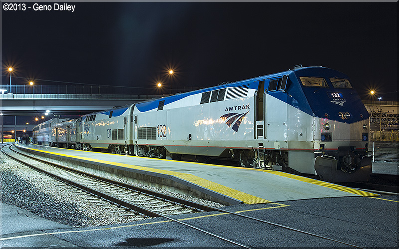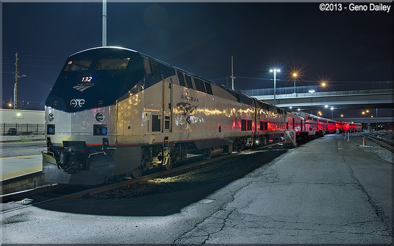 night photography! Here we have the California Zephyr taking a break at Salt Lake City.