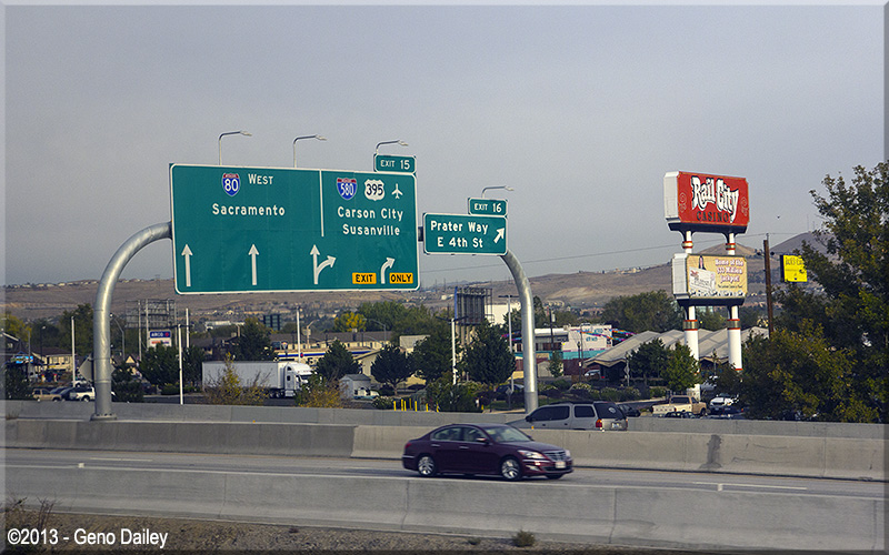 | Paralleling I-80 and passing a sign for the "Rail City Casino"! Welcome to Reno!!! |