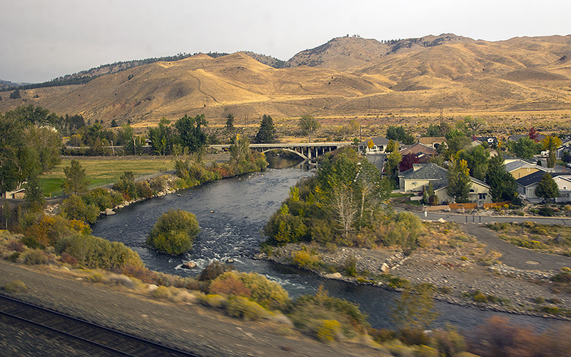 | Now riding along the Truckee River again, having departed Reno and closing in on the California state line! |