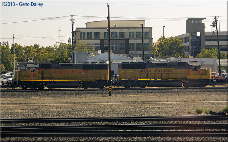 | 2 Union Pacific EMD GP38-2's at Roseville yard. |