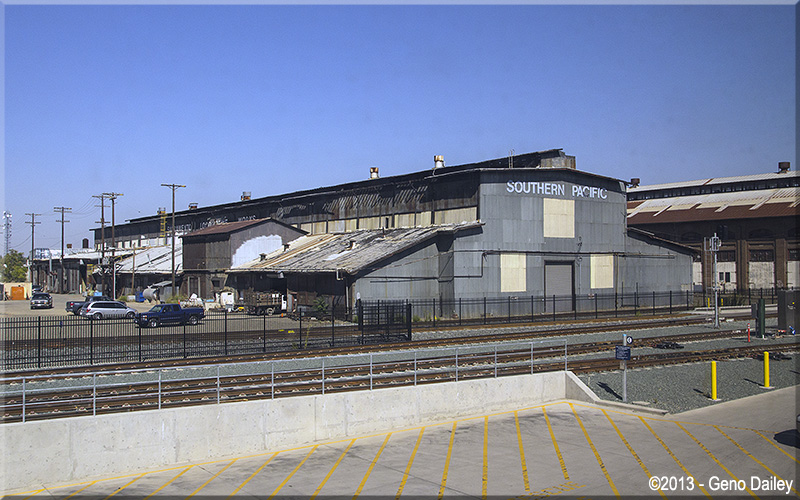 A building from the former Sacramento Locomotive Works on the Southern Pacific, located near the Sacramento station.