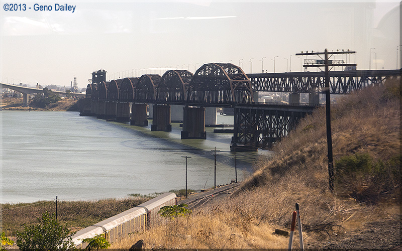 We're about to go over the Benecia-Martinez Bridge and make the next station stop of Martinez, CA shortly after crossing the bridge.