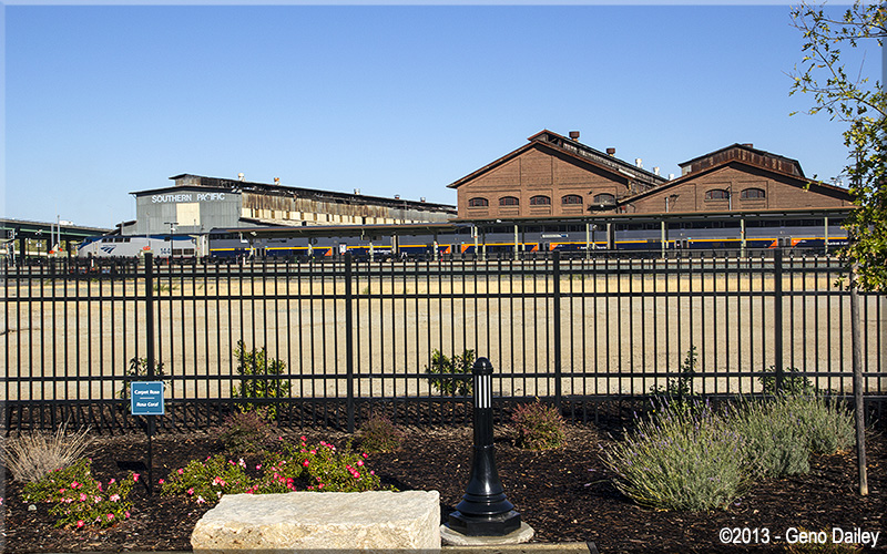 | As seen from the Sacramento Station platform, P42DC #144 was the engine that pushed the train back here from San Jose. |