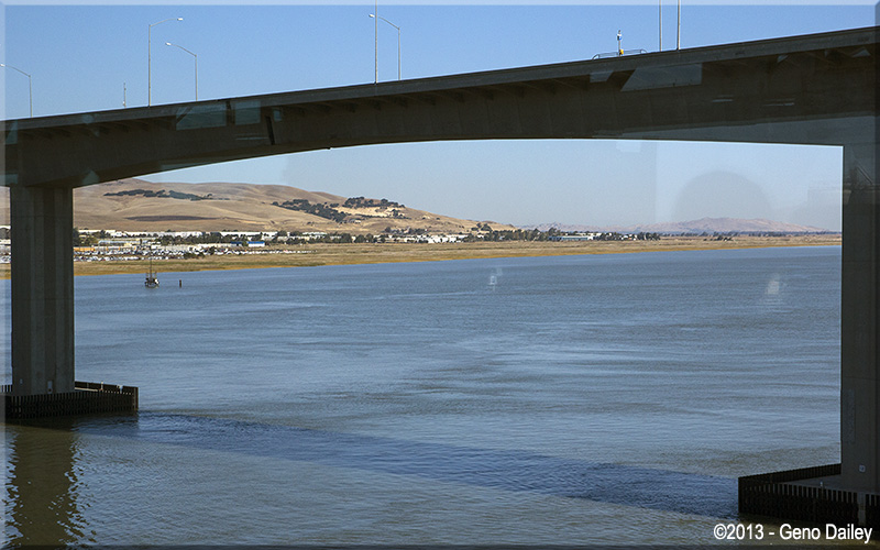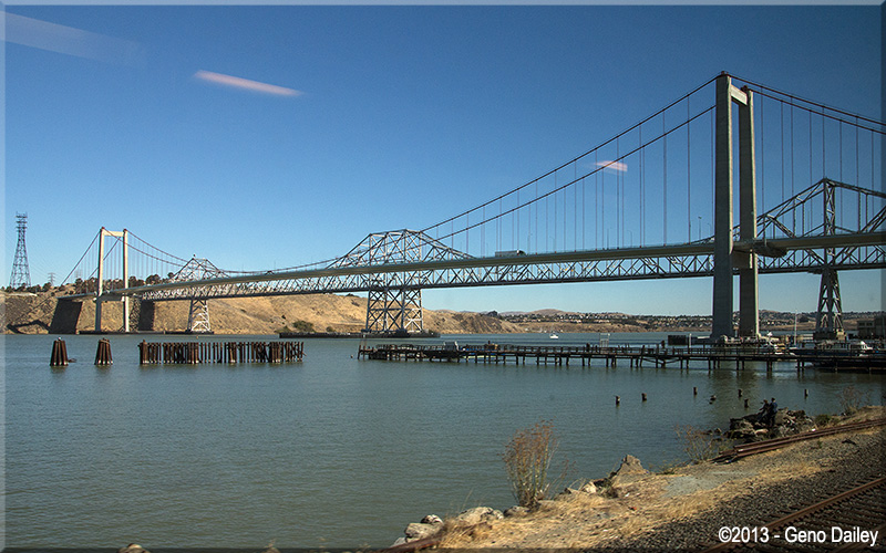 Crossing over the Benecia-Martinez Railroad Bridge. The bridge in this photo is the