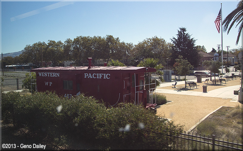 | A former Western Pacific Bay-Window Caboose on display in Fremont, CA. |