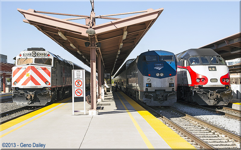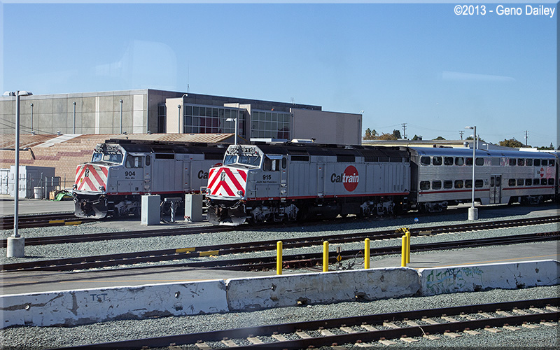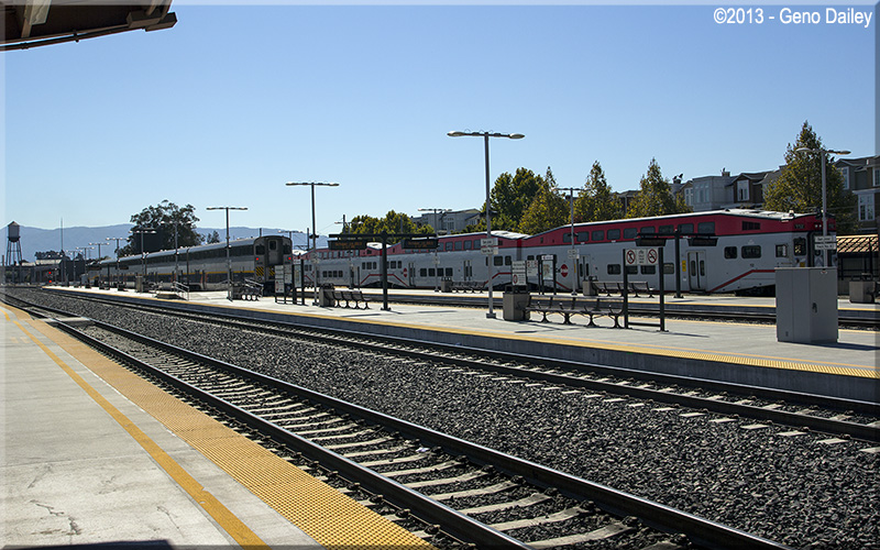 | And then there were three!!! Two Caltrain trains with what will become Amtrak California Capital Corridor Train #538. |