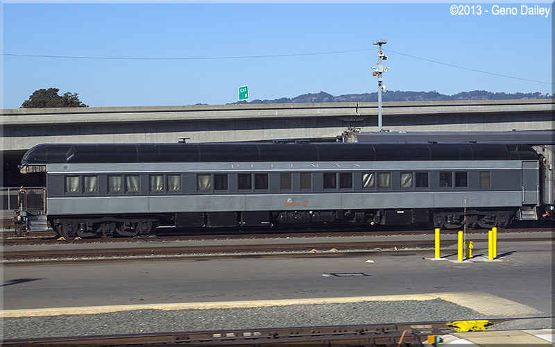 | Private car "Virginia City", which is a Pullman Observation Platform Car, was sitting in Amtrak's yard in Oakland. |