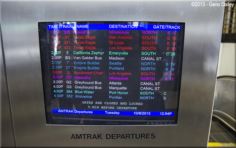| One of the departure boards inside Chicago Union Station. My train this day would be the California Zephyr! |