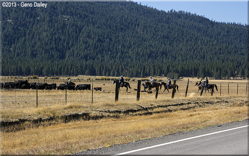 | This is like a scene out of the Billy Crystal movie "City Slickers"! Here is a real cattle drive somewhere near Portola, CA! |