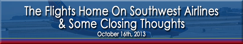 Shortly before the boarding call for my flight, an irate passenger on another flight began making a scene in the airport complaining that she was not gonna be allowed to board her flight for exact reasons that were unknown. I never saw how that whole situation ended as I had now boarded my plane to bring me home. The flight was not full which would allow me to just relax across a couple seats once the "Fasten Seat Belt" light was shut off. We ended up departing some 40 minutes late as there was a weight distribution problem with the plane that required the baggage handlers to have to move luggage to different compartments in the belly of the plane to balance the weight. This was attributed to the fact that the flight wasn't full and so the belly of the plane wasn't full of luggage either. Once that was done, we took off and I had another uneventful flight back to Buffalo in another new Boeing 737-800. Upon landing in Buffalo, I would pick up my bags at Baggage Claim, then take a shuttle bus back to The Parking Spot which was located across the street from the airport where my car was parked, waiting for me, and so ends one completely, and totally awesome trip!!!