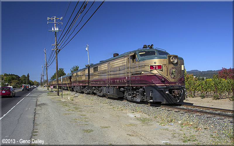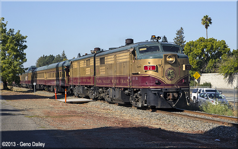 | Now back in the City of Napa, we have the train running next to Solano Avenue. |