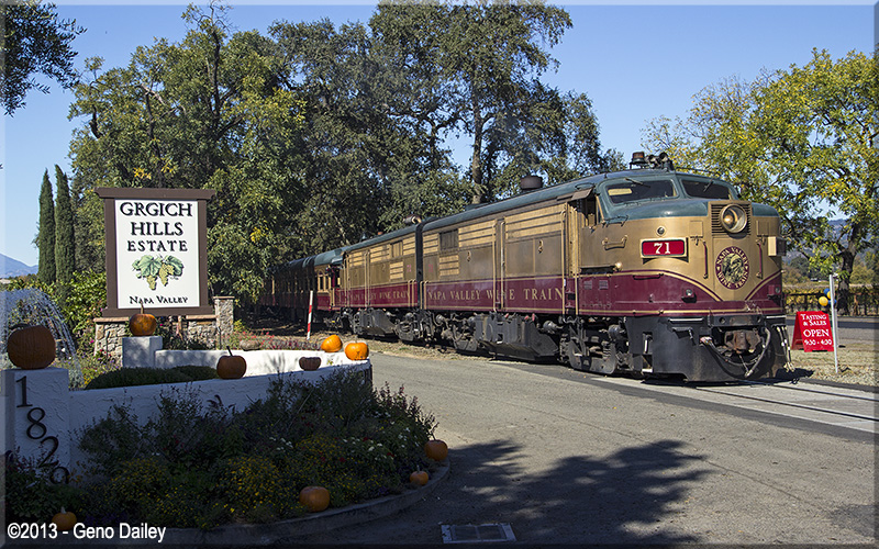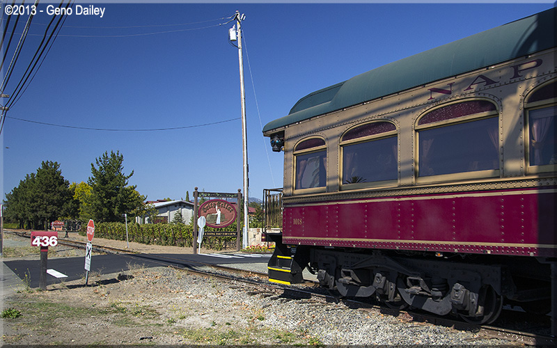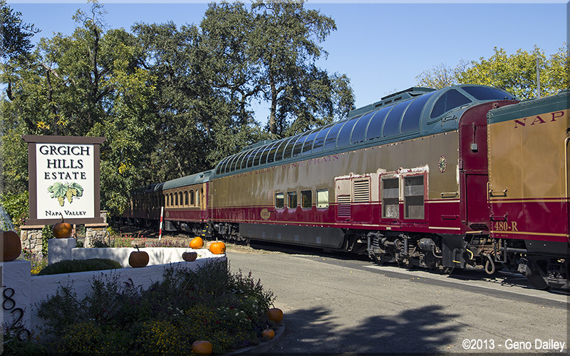 | The Chardonnay Lounge Car passing Heitz Cellar. |
