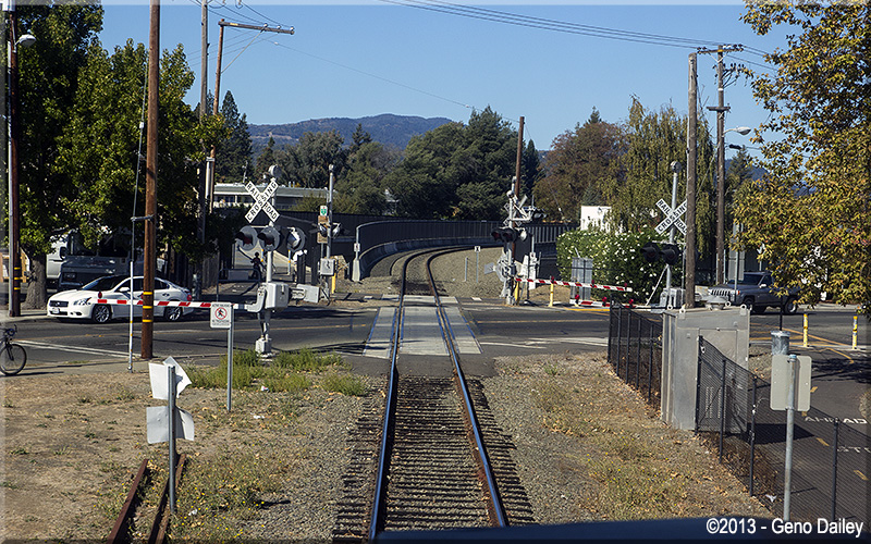 | Now departing Napa Station, we're about to cross Soscol Avenue. |