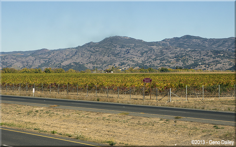 | Now THIS is Napa Valley!!! The sign in front of that vineyard indicates we're entering the Oak Knoll District. |