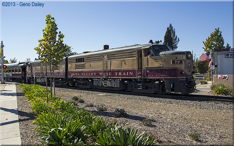 | The train's two FPA-4's having just crossed Soscol Avenue. |