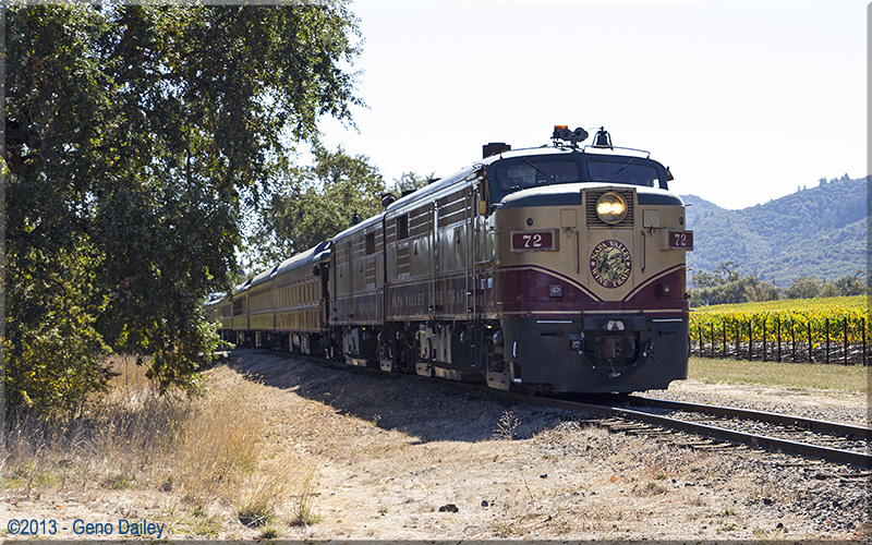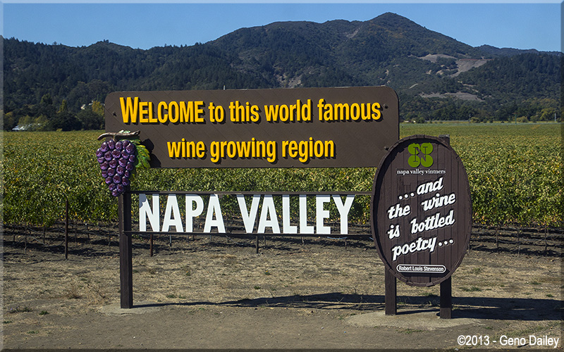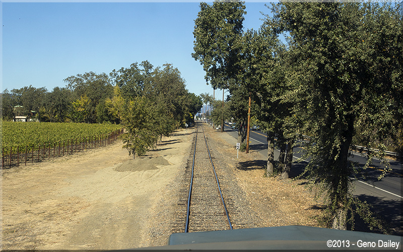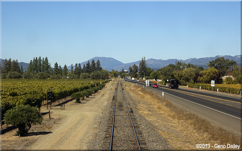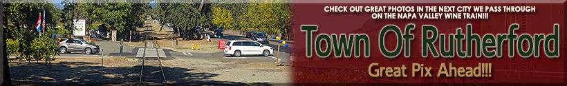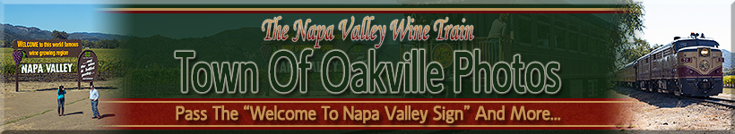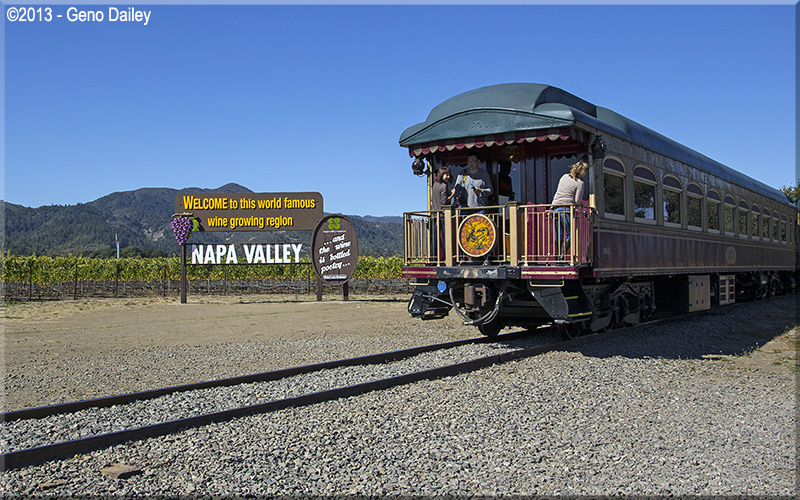 | The train approaching the famous "Welcome To Napa Valley" sign in Oakville. |