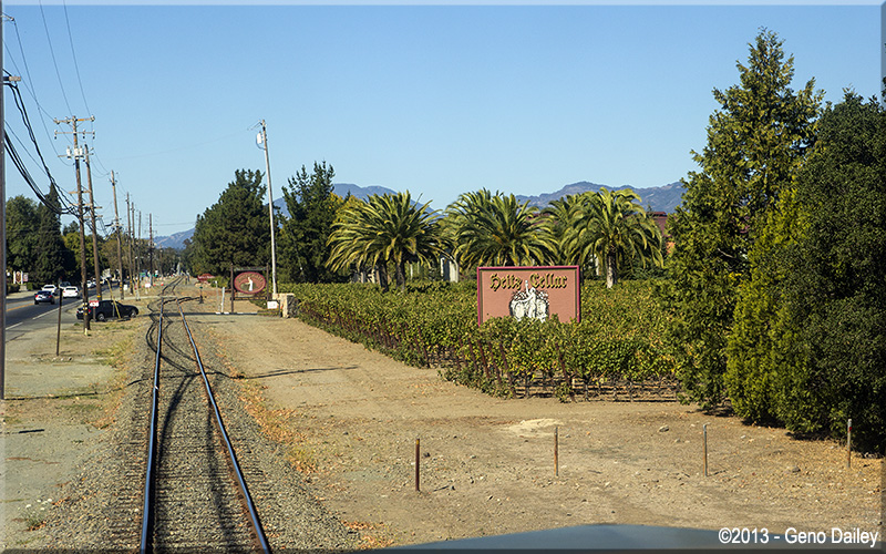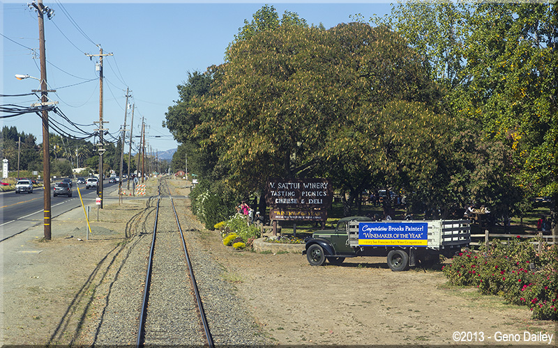 | Approaching the Louis M. Martini Winery and an old siding. |