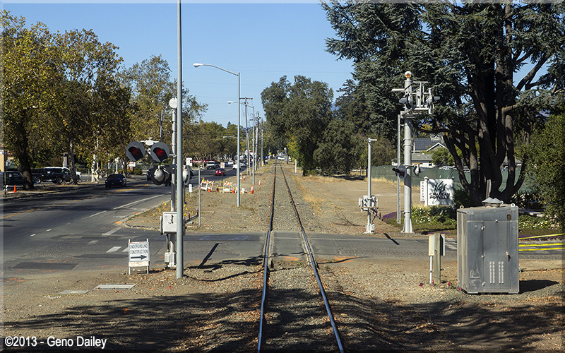 | Approaching Hunt Avenue. Saint Helena Station is now within view in the center of this photo. |