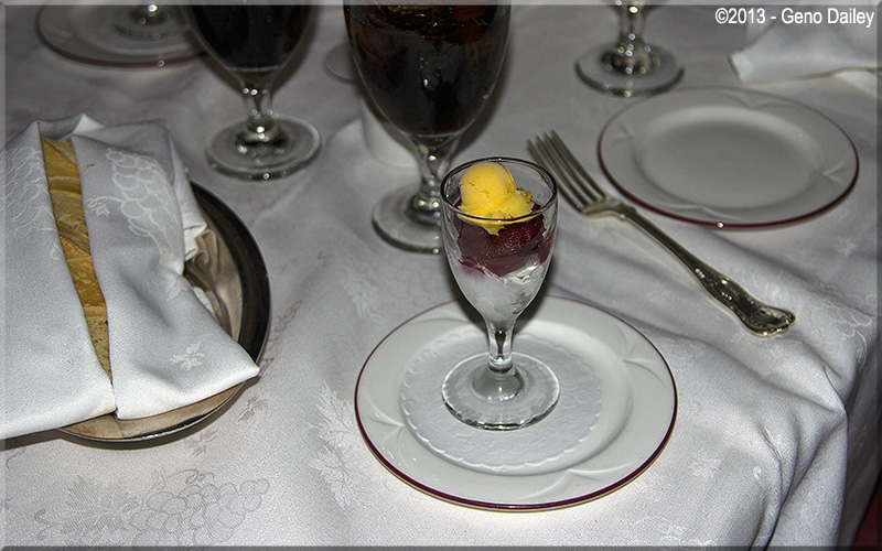 which is billed as "a delicate trio of the Wine Train's Sorbets". |