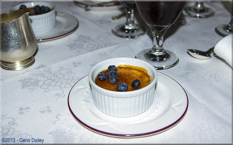 And finally for Dessert, I would have Creme Brulee topped with Blueberries.