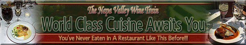I think the photos on this page are gonna make you very hungry or maybe thirsty for a nice glass of wine!!! You really need to get out to Napa and ride this train for yourself and experience the incredible food that is part of what makes the Napa Valley Wine Train so great! So for now, check out these great food photos! Are you hungry yet??? |