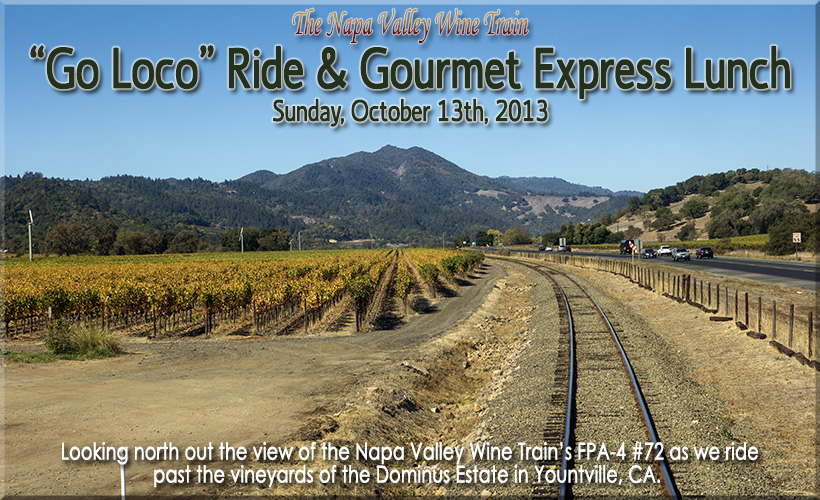 New this year to the Wine Train is Electric Power Car #480-R which is named "Grappa" after the extremely strong brandy of the same name. I would walk through this car after lunch to get interior photos of it. Special thanks goes to the Wine Train's Marketing & Public Relations Department for providing me information on this very neat car: It was built inside a box car that was built for the Department Of Defense in 1953 that the Wine Train had acquired from the Mare Island Naval Shipyard and houses a 400kw whisper quiet generator like those used on movie sets. Installing the generator so it was flush with the wall of the car left enough room for a wide enough walkway through the car and I can say from experience, you would have a very hard time believing this is a generator car as it's that quiet!!! The original box car had its height reduced by 2 feet so that it wouldn't block the view from the Vista Dome Car and not look out of place. Having a car like this in the train allows the train to not temporarily lose electric power during the run-around of the engines at Saint Helena. Previously, the Head-End Power (HEP) was being supplied by one of the locomotives. During the run-around move, ground-based HEP was used but that involved having to temporarily shut off electric power on the entire train when switching from HEP from the locomotive to ground-based HEP. Having a power car like this eliminates the need to have to temporarily shut off electric power. This is the only car of its kind on a train like this in the country!