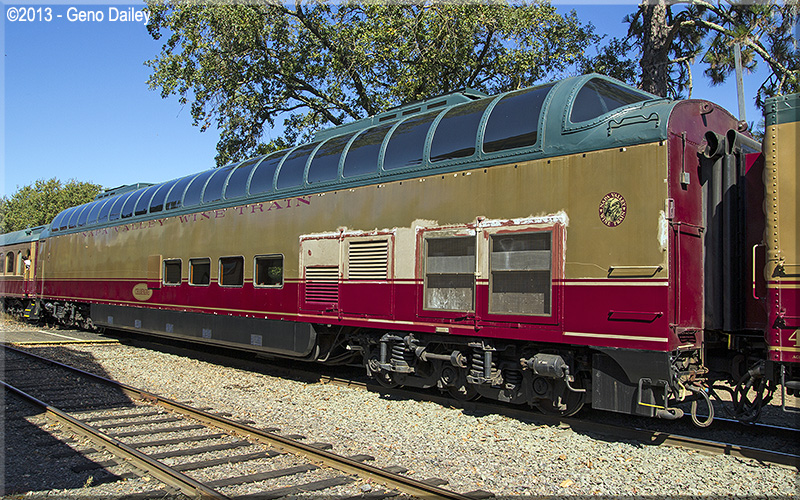 This car has quite a storied history having been one of the first full-length dome cars built in America! It was originally built as Milwaukee Road #52 for use on their famous Olympian Hiawatha train from Chicago to Seattle. The car also operated in Canada with Canadian National and later Via Rail Canada as #2405 and was named Columbia. The car also operated on Pricess Cruises Tour Alaska trains as car #800481 and named "Mount McKinley". Amtrak operated this car for a period of time on its Auto Train as Dome-Buffet-Lounge Car #9311 (prior to Amtrak equipping the Auto Train with Superliners). Riding in a dome car is a truly unique experience that you will never forget! It provides some of the best views from the train while enjoying the world class cuisine you will have on the wine train! Historical Information about this car provided by the Napa Valley Wine Train, and Trainweb.org. |