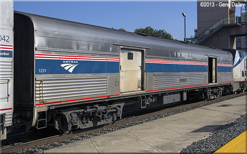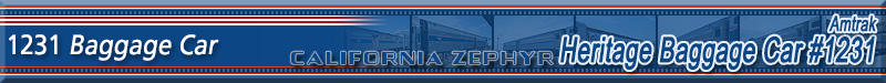 Former Baggage Car for the Santa Fe Railway. Conveyed to Amtrak in 1971 and numbered 1056. Converted from Steam Heat to HEP in February 1978 and renumbered 1231. This was actually the second car to wear this number as another Baggage Car built by ACF for the New York Central and later Penn Central had the number 1231 until March 1977 when it was renumbered and re-assigned for work train service. Historical Information about this car provided by
