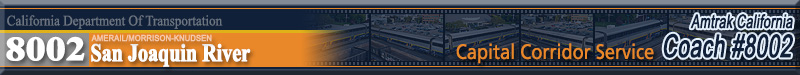 These cars were built for California state-sponsored trains run in conjunction with Amtrak. They operate on Capital Corridor, as well as San Joaquin Service trains. Information about the history of this car provided by www.amtrakbythenumbers.com.