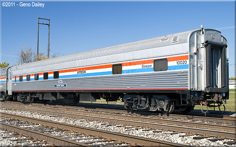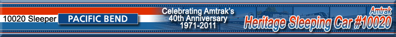 Former 10/6 sleeper for the Union Pacific. Conveyed to Amtrak in 1971, the car operated as a sleeping car and later a crew sleeper before being stored in 2006. The car was reactivated for use by the Amtrak Police in 2007 and renamed "Pacific Command". The car was renamed back to "Pacific Bend" when selected for the Exhibit Train. Historical Infomation here provided by Amtrak.