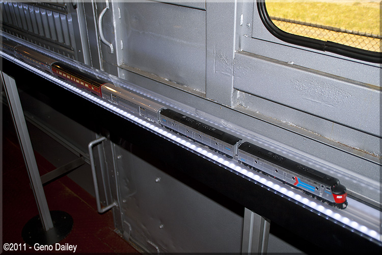 | An HO Scale model of a typical Superliner-equipped Amtrak train of the 1980's. |