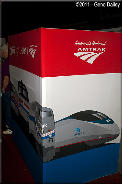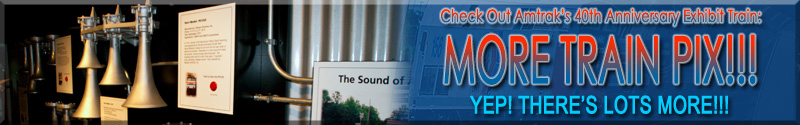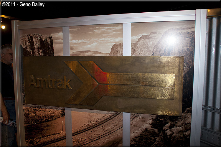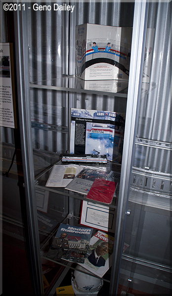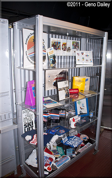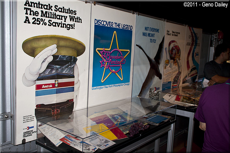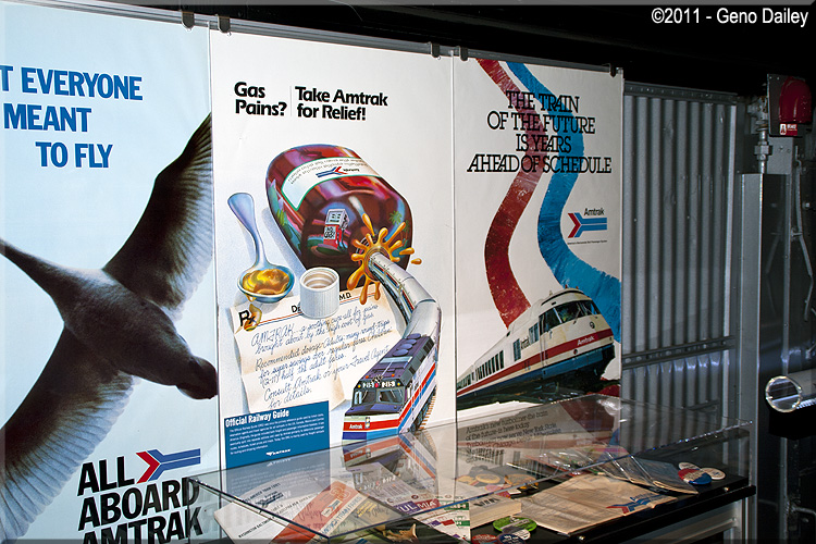 | More display cases showing buttons, shirts, posters, etc, ALL THINGS AMTRAK!!! |
