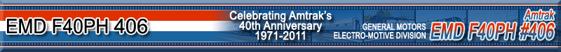 Built in 1988 by General Motors' Electro-Motive Division, this unit was used all over the country until its eventual placement into storage in 2001. This unit was rebuilt into a Non-Powered Control Unit (NPCU) for the Exhibit Train and will eventually become part of the fleet of former F40's that were converted to NPCU's. This unit does provide Head-End Power (HEP) for the exhibit train. Historical Information about this locomotive was provided by Amtrak.