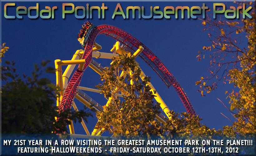 On Saturday, I first backed up the photos I took yesterday onto 3 hard drives (I'm not gonna risk losing these photos while on the trip!) and continued writing this travelogue. I would spend all day at the park though the weather would refuse to cooperate during the later part of the day. I will say this though, there's nothing like riding a roller coaster in the rain at night!!! Cedar Point has once again lived up to its designation as "Best Amusement Park In The World" for the 15th year in a row. The park was all set up for HalloWeekends which if you ask me is the best time of the year to visit the park since you're not baking in 95 degree heat and the park is open until midnight on Friday and Saturday! Coming in 2013 is GateKeeper, a new roller coaster that will transform the front of the park forever so this means I will definitely be back here again next year! After spending the entire day at the park, I drove back to the hotel and called it a day. Included here are photos taken at Cedar Point this year (some of them were taken on 2 prior road trips here earlier this year to better illustrate the story). If you ever get a chance to visit this place, you will have an incredible time! There is simply no park like it anywhere in the world, Enjoy!!!