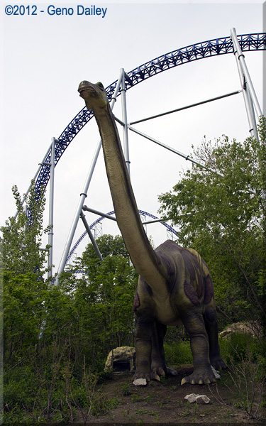RIGHT: A Spinosaurus with Millennium Force flying by above! |