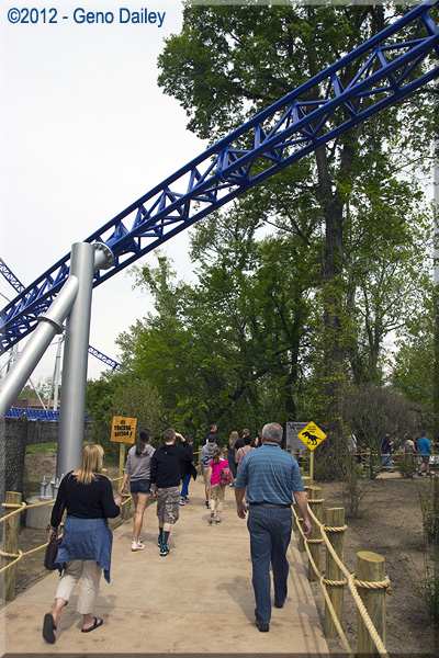 LEFT: An Apatosaurus. RIGHT: This is the path along the island that also shares its land with Millennium Force, the 310ft tall
