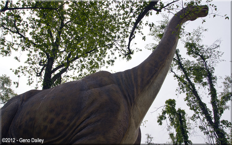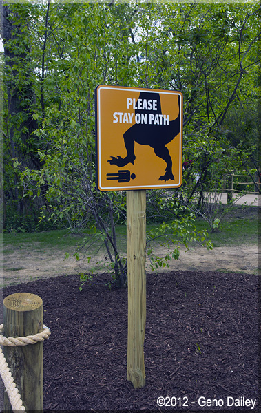 One of Cedar Point's new attractions for 2012 is "Dinosaurs Alive" on Adventure Island which features full-size animatronic dinosaurs that move around (slightly) and make noise. Each dinosaur has a display board in front of it that gives the name of the dinosaur as well as information about when it lived and other interesting historical info. The attraction carries a separate charge of $5.00, well worth the price especially if you're into archeology or just into dinosaurs! Included here are photos taken of this new exhibit in the park. All but the final photo were taken on Opening Day, May 12th, 2012 which explains the bright green leaves on the trees. Enjoy... |