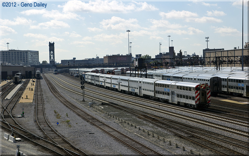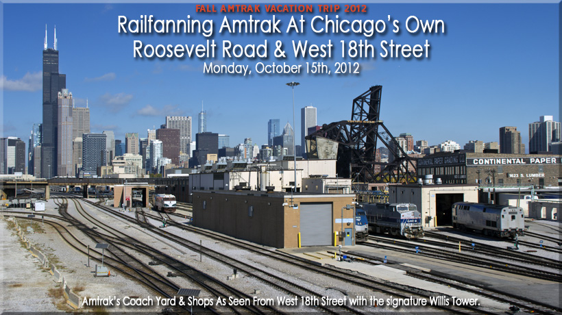 | Looking north from Roosevelt Road, some P42's are sitting on on one of the coach yard tracks. | |