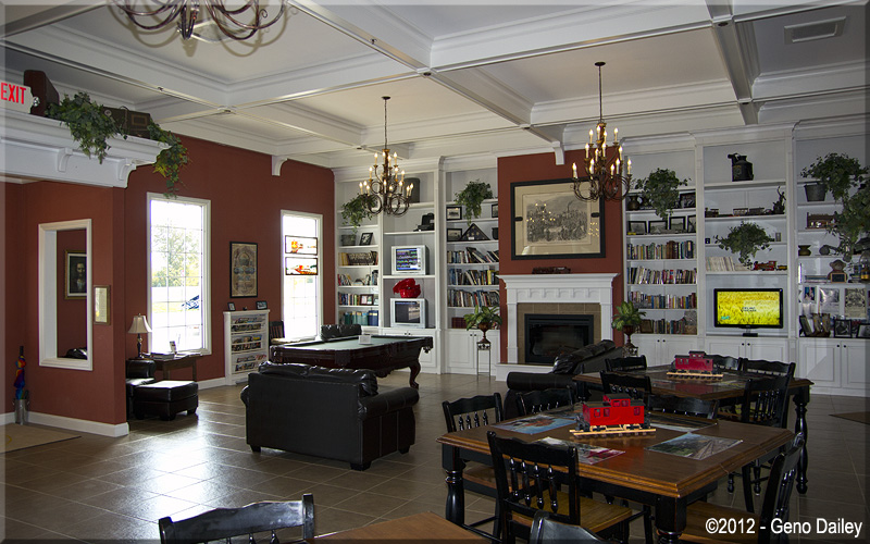 The main lobby also features a pool table as well as a TV broadcasting an ATCS monitor of the BNSF Marceline Sub which is the rail