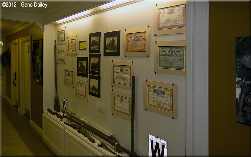 | Stock Certificates along with more tools of the railroad. There's lots to see in this part of the hotel if your a big fan of the rails!!! |