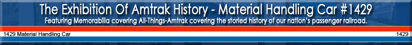 | Former Amtrak Material Handling Car (MHC-1) #1429. This car was built in 1986 by Thrall and was retired by Amtrak in July 2003. Special Thanks to www.amtrakbythenumbers.com for historical information on this car. |